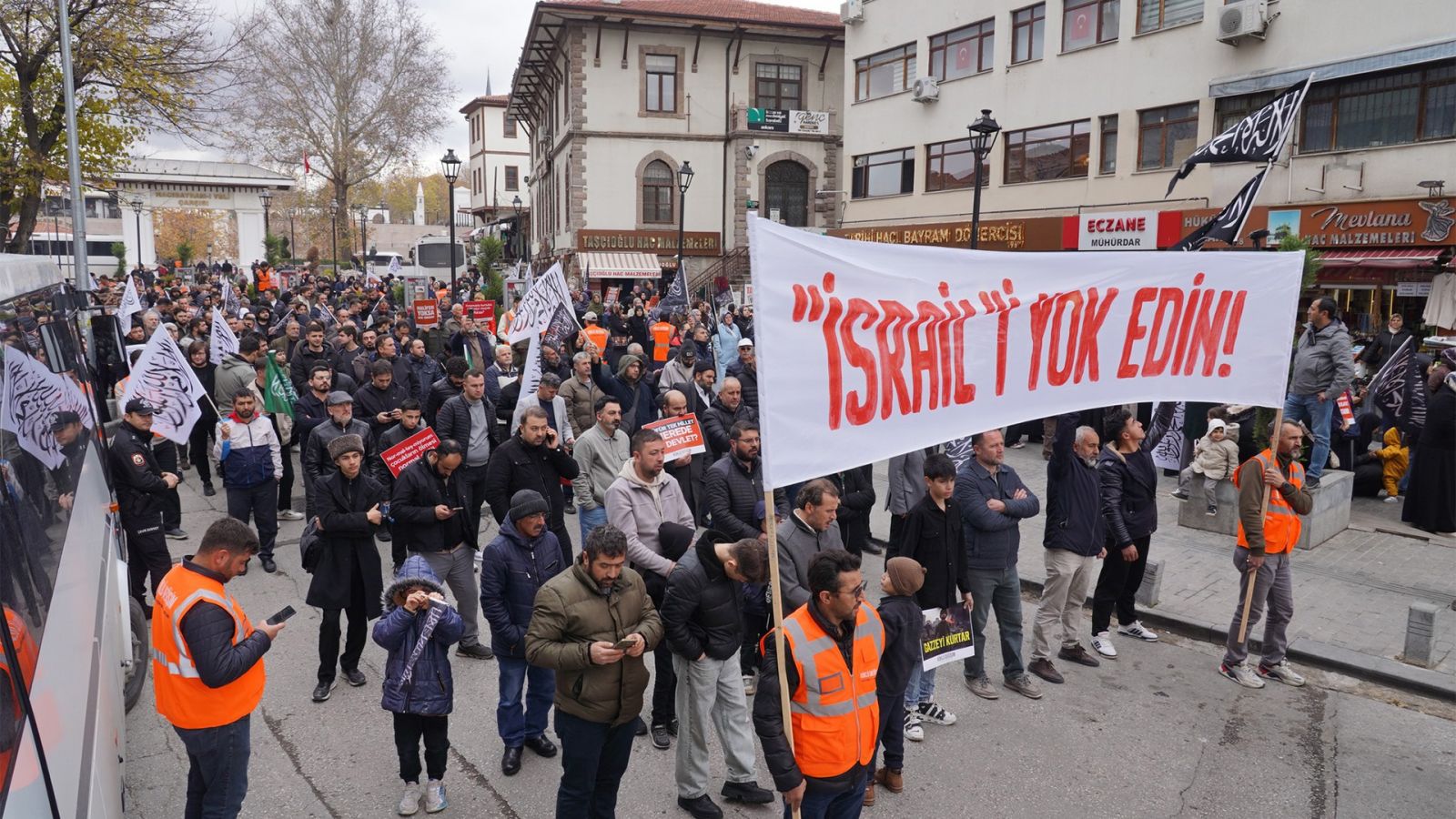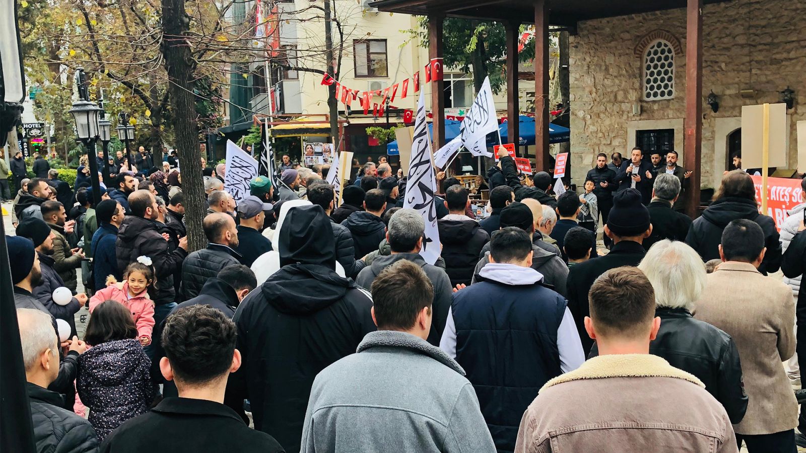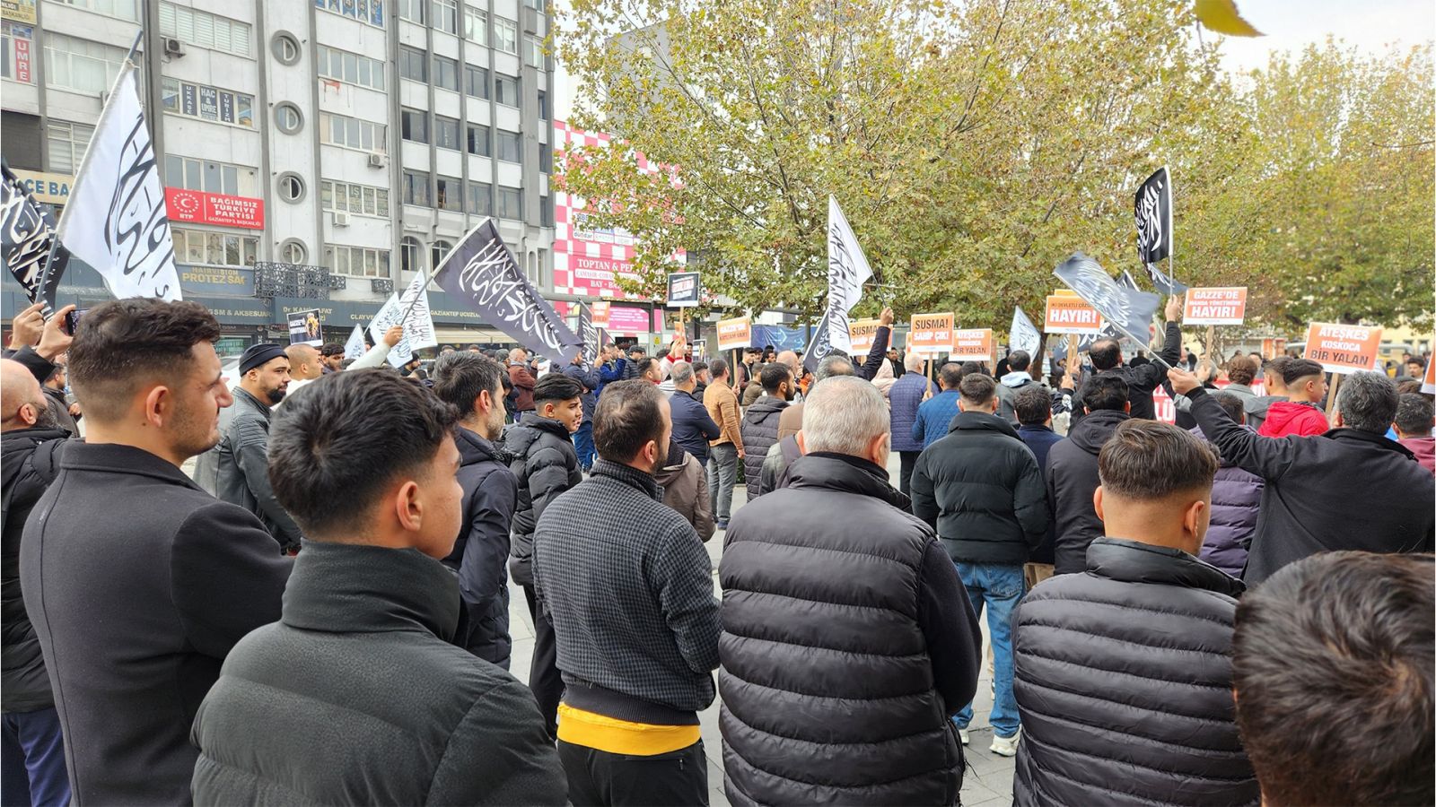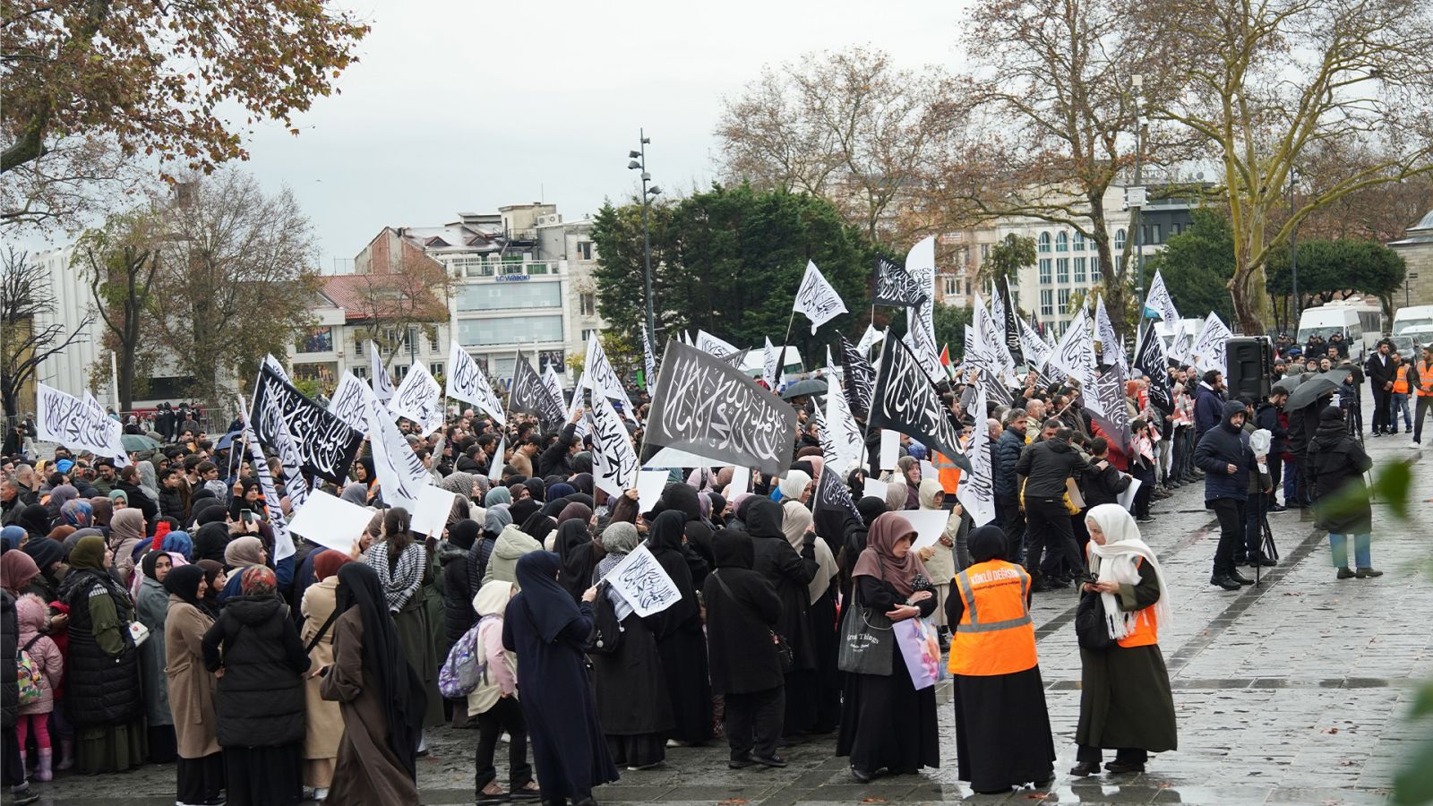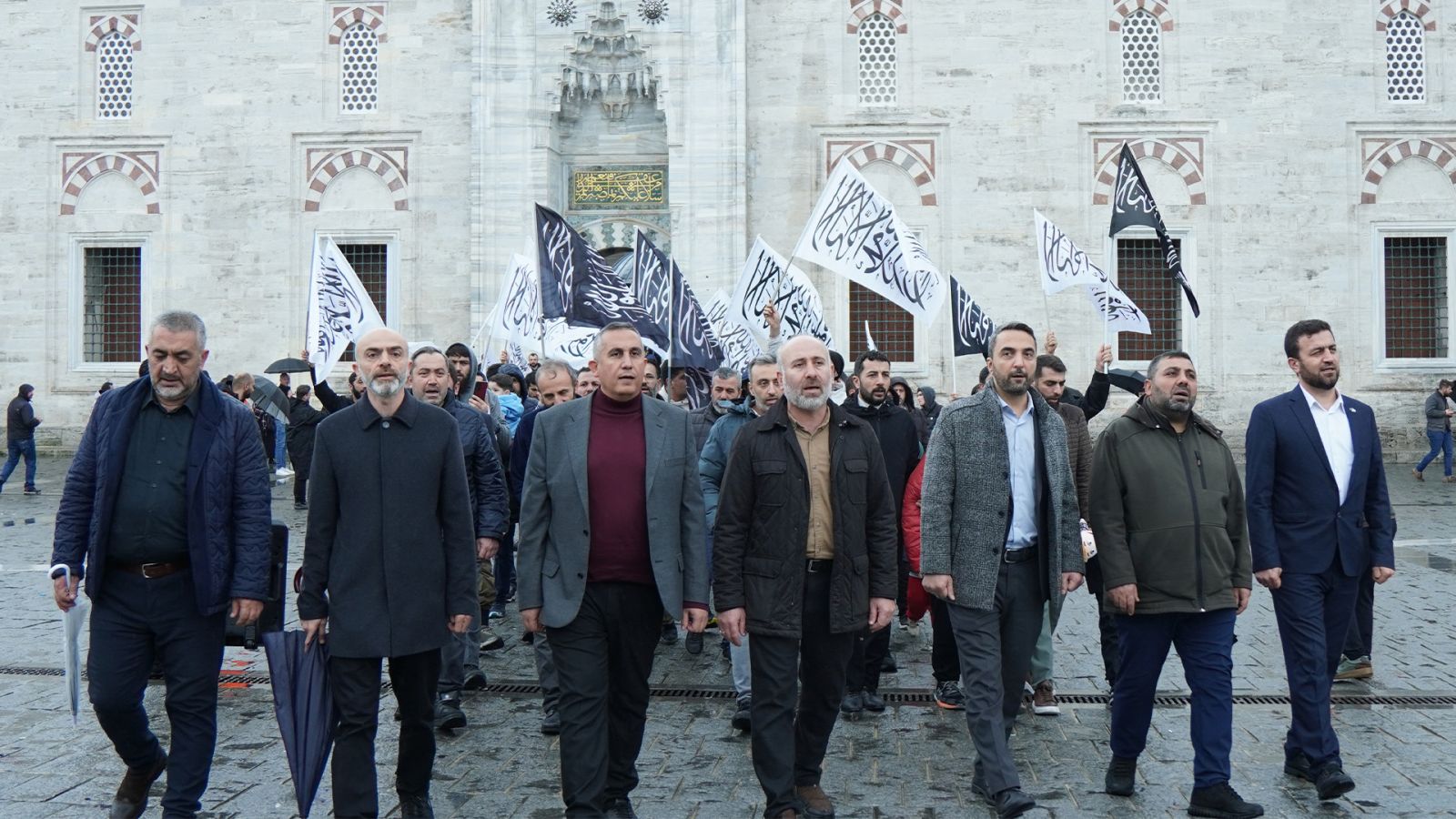 Hacıbayram-ı Veli Camii’nde kılınan öğle namazının ardından Tevhid bayraklarıyla başlayan yürüyüş, emniyetin engellemesi ile karşılaştı. Tevhid bayraklarıyla yürünmesine engel olunması üzerine alandaki Müslümanlar, “İslam’ın bayrağı Tevhid bayrağı” sloganları attı.