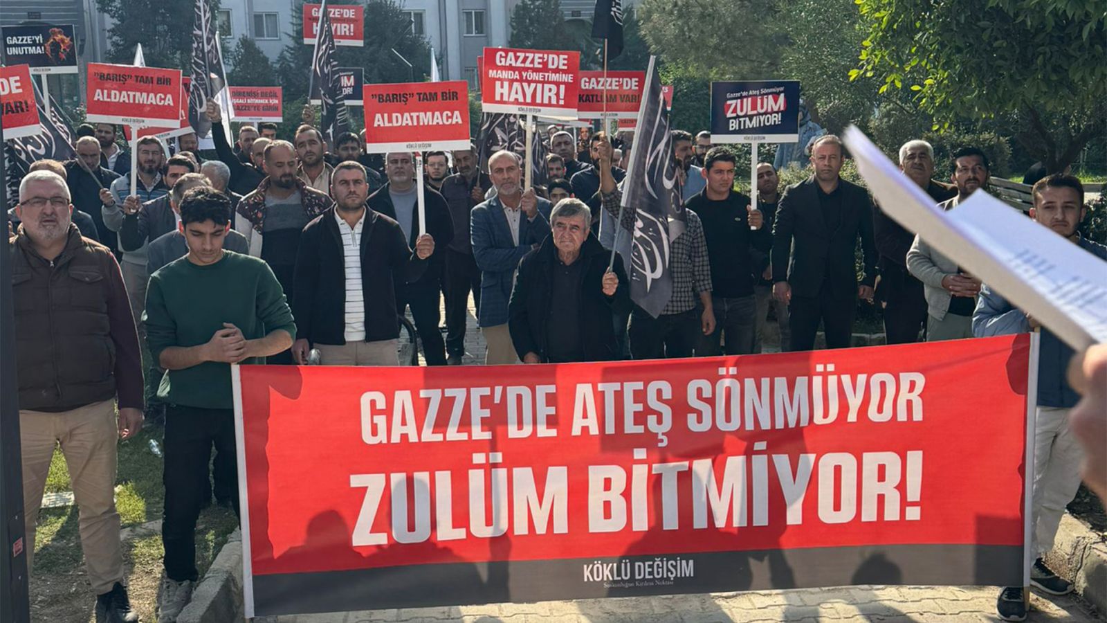 İşgalci ‘İsrail’, 10 Ekim’de ilan edilen ateşkesi en az 500 kez ihlal etti. Bugüne kadar 360'tan fazla Filistinli Müslüman katledildi. Mısır, Türkiye ve Katar’ın da garantör olduğu, 10 Ekim’de imzalanan, ABD Başkanı Donald Trump’ın hazırladığı ve dostlarının da hayata geçirmek için büyük çaba sarf ettiği sözde ateşkes planın gerçek hedefini ifşa etmek, devam eden katliam ve işgale karşı sessiz kalan İslam beldeleri yönetimlerini muhasebe etmek için meydanlardan çağrılar yaptık.