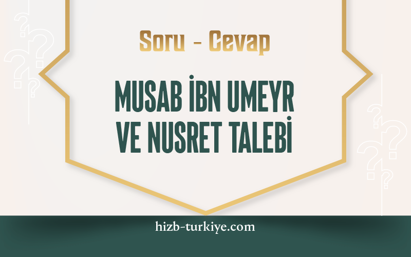 - Soru Cevapta (Ayrılanlar ve nusretin gecikmesi) şeklinde geçmektedir. Nusret talebi konusunda (… Yoksa Musab Allah’ın Rasulü Sallallahu Aleyhi ve Sellem’in iyiliğinin ötesinde daha iyi bir şekilde mi nusret talep etmişti?) Ve şöyle geçmektedir; (…Rasul Sallallahu Aleyhi ve Sellem, onlarca kez nusret talebinde bulunmuş, kendisine icabet edilmemiş ve iyiliğin ötesinde bir iyilik yapmıştır… Musab Radıyallahu Anh’a icabet edilmiştir…) Öyleyse faziletli Şeyhimiz, bize Musab İbn Umeyr’in Medine halkından nusret talep ettiğine dair delili söyler misiniz… Çünkü bizler biliyoruz ki; siyer kitaplarına ve aynı şekilde Şeyh Takıyyuddin en-Nebhâni Rahımehullah’ın İslam Devleti Kitabı’na göre Musab İbn Umeyr Medine’de insanları İslam’a davet etmiş ve onlardan dine nusret vermelerini talep ettiği geçmemiştir…