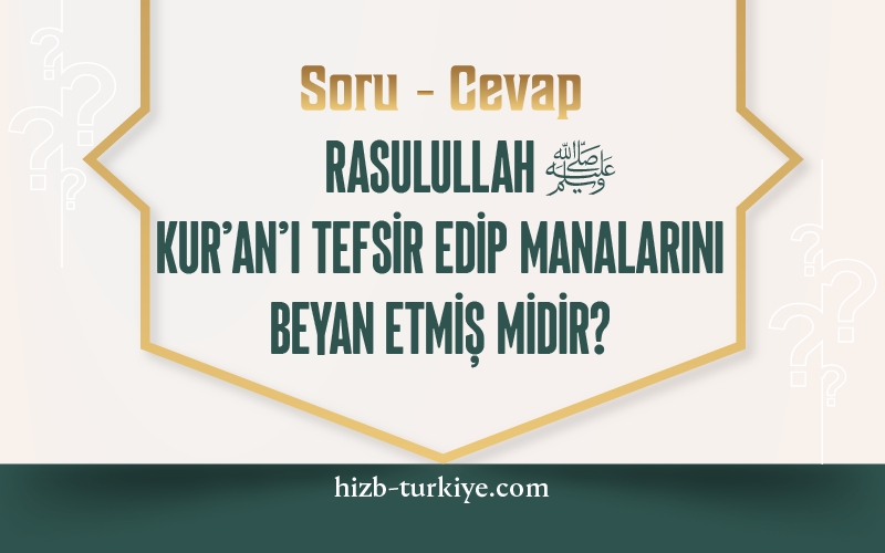 Soru: Bundan Rasul Aleyhissalatu ve’s Selam’ın Kur’an’ı tefsir ettiğini ve onun manalarını beyan ettiğini mi anlamalıyız? Yoksa onun tefsir etmesi, şerî isimlerin manalarını beyan etmekle mi sınırlıdır?